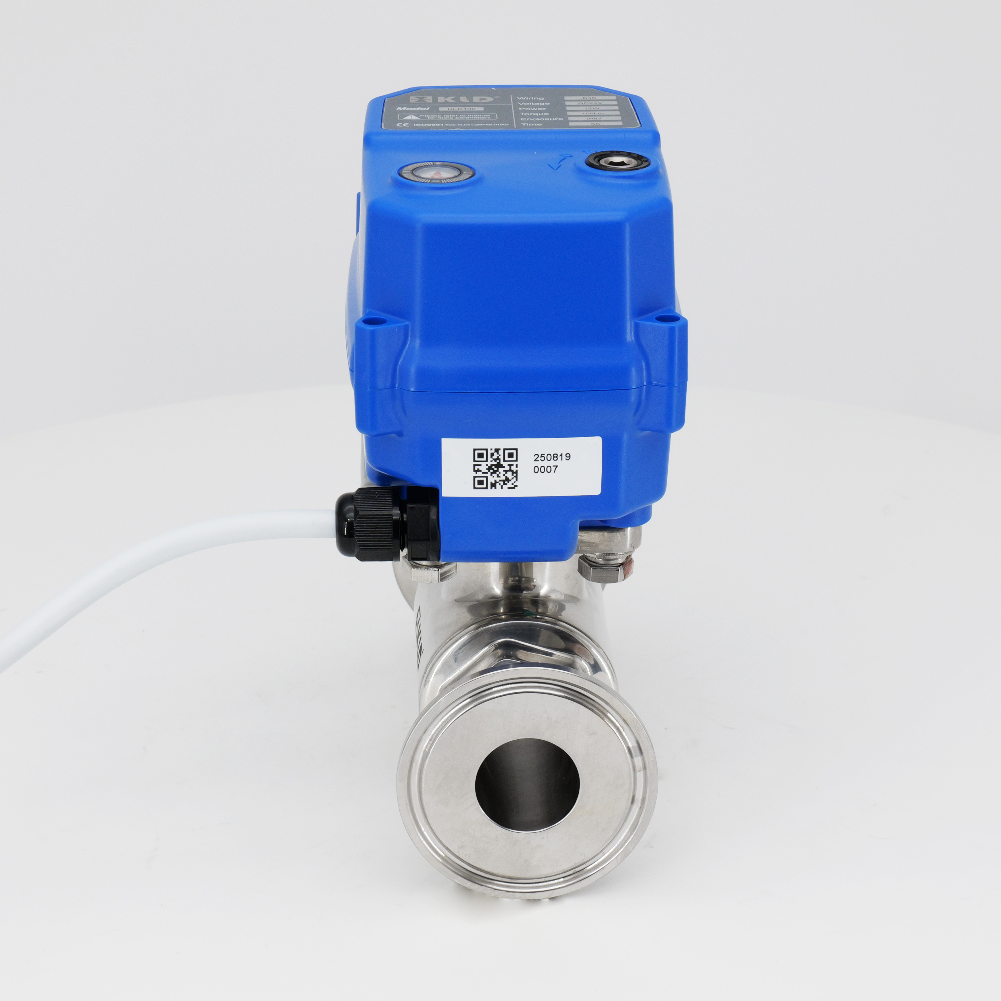 KLD100 2-Way Motorized Ball Valve for Fast Assembled (Tri-Clamp) is designed for fast assembly with a tri-clamp connection, offering a compact and reliable solution for flow control in various applications. The valve features a robust construction with a stainless steel body (304/316/316L) and PTFE ball seat, ensuring durability and compatibility with a wide range of media. Its brushless motor provides stable and reliable operation, with a long service life of up to 20,000 cycles, suitable for demanding industrial environments.
